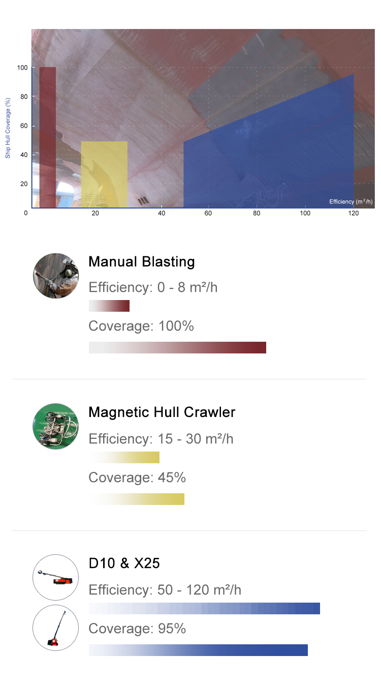 Engineered for versatility, X25 handles various sections of the ship, including vertical surfaces, and other hard-to-reach areas,
